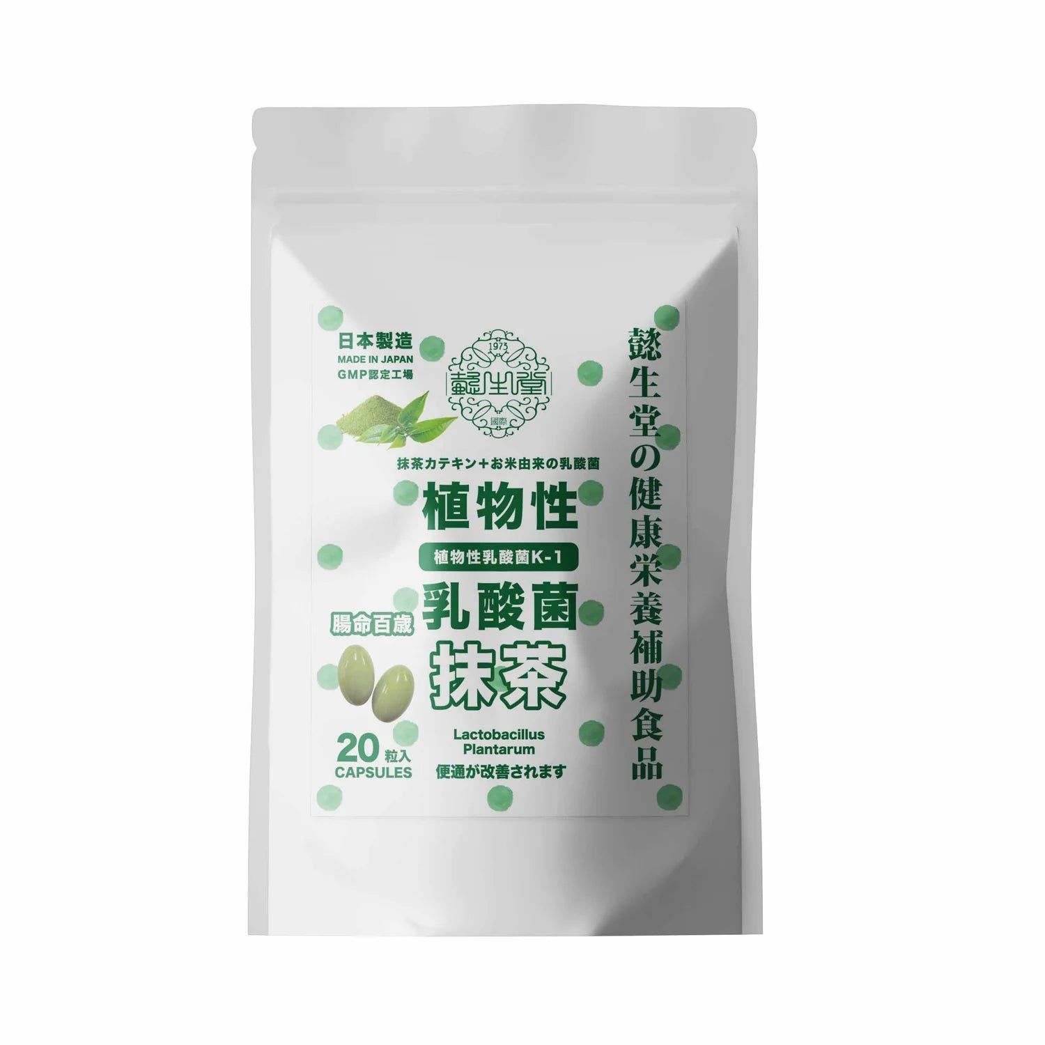 This health supplement combines high-quality Japanese matcha with Lactobacillus Plantarum K-1, designed as a nutritional product for modern individuals. It aims to improve digestive system health, promote internal balance, and provide natural antioxidant support.